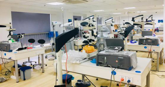 醫(yī)院教學設施齊全,設有開放專業(yè)圖書館與閱覽室,購有專業(yè)期刊,共享廈門大學醫(yī)學院圖書館;開設600平方米標準化技能訓練中心,配置了8臺(套)帶助手鏡的全新萊卡及蔡司顯微鏡、全套“貝爾一鋒”眼科手術精品器械、多功能眼科顯微手術操作臺及臉部模型。滿足眼前段和后段包括角膜眼表手術技術、白內障手術技術、玻切手術在內的眼科顯微手術訓練需求。