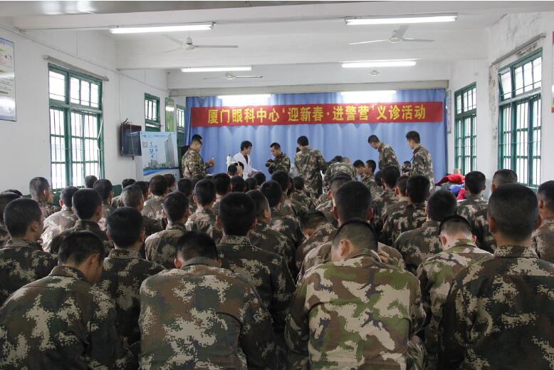 1月29日下午,廈門眼科中心眼表與角膜病專家一行9人冒著冬雨到翔安武警邊防支隊機動大隊,開展“迎新春 送健康”健康咨詢、義診活動,并為邊防支隊武警贈送了進口眼藥水。廈門眼科中心以實際行動提前為武警邊防支隊致以新春祝福與問候,并送去了健康。義診現(xiàn)場氣氛十分熱烈,義診從下午三點半一直持續(xù)到下午六點,為近百名武警做了眼體檢。