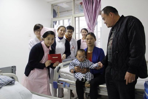 由于小燦寶家境不好,全家九口人,上面有年邁的爺爺奶奶,加上小燦寶兩兄弟,小燦寶媽媽要照顧兩個年幼的孩子無法工作,另外,小燦寶大伯幾年前去世,小燦寶大伯母離家未歸,大伯家的三個孩子也是小燦寶父母代為照顧,九口人只有小燦寶爸爸工作養(yǎng)家。護士梁嘉惠了解到情況后,與護士長陳秋蓮商量在微信朋友圈發(fā)起愛心捐款。經(jīng)過三天募集,一共募集到9926元善款。