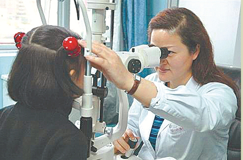 廈門眼科中心斜弱視小兒眼科學(xué)科帶頭醫(yī)生潘美華主任為患兒查眼