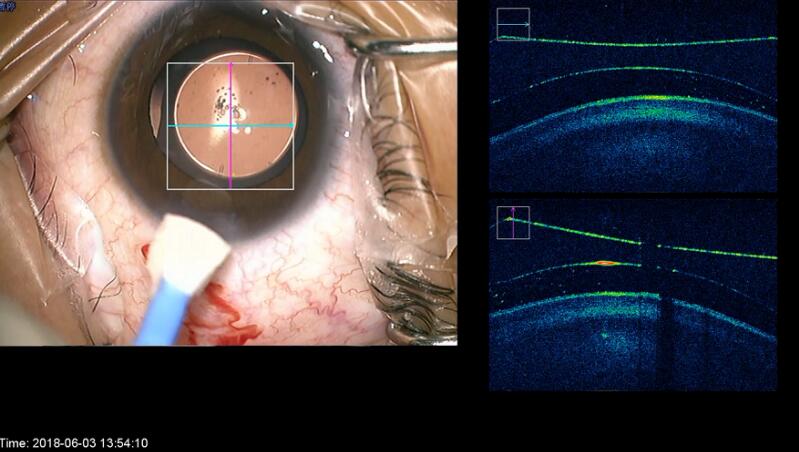 廈門大學附屬廈門眼科中心總院長黎曉新教授已使用該術中OCT完成了不少眼底手術,她以黃斑手術為例介紹說,作為視網(wǎng)膜重要的結構,黃斑手術的精密度要求非常高。在黃斑裂孔手術中,術中OCT可以實時監(jiān)控整個過程,核心步驟完成,可以立即掃描,觀察OCT來評估手術作用,預測術后恢復,對于手術起到重大的保障和提高,使得手術質量得到跨越式地提升。