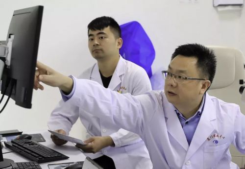 ▲張廣斌院長(zhǎng)為患者講解眼部情況