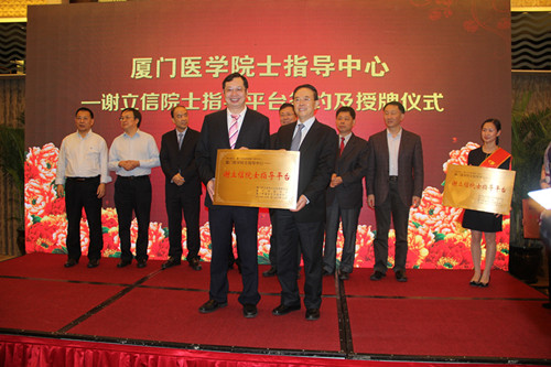 作為本次論壇的一個(gè)重要環(huán)節(jié):廈門醫(yī)學(xué)院士指導(dǎo)中心——謝立信院士指導(dǎo)平臺(tái)簽約授牌儀式在廈門市委市政府的關(guān)心支持,以及廈門市衛(wèi)生計(jì)生委員會(huì)的大力推動(dòng)下如期舉行。