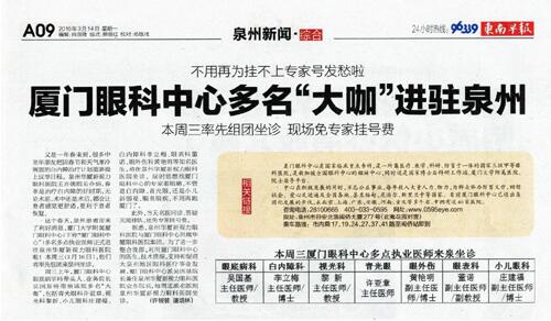 眼科醫(yī)院啦!3月16日(周三),他們將率先組團(tuán)到泉州坐診!