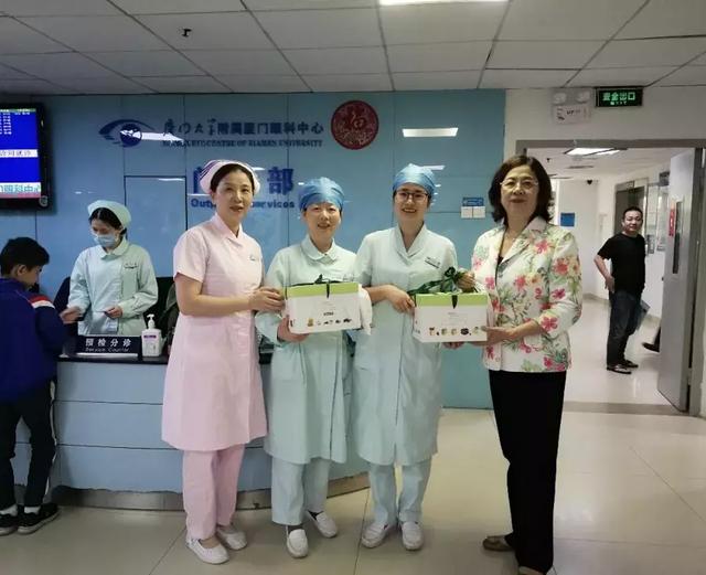 5月12日上午,廈門(mén)大學(xué)附屬?gòu)B門(mén)眼科中心工會(huì)主席陳逸恬、護(hù)理部主任許春麗及華廈眼科集團(tuán)護(hù)理管理中心洪清配業(yè)務(wù)副院長(zhǎng)一行專(zhuān)程前往各科室,慰問(wèn)正在臨床一線(xiàn)辛勤工作著的護(hù)士,為大家送上節(jié)日蛋糕,送上節(jié)日的問(wèn)候和祝福。