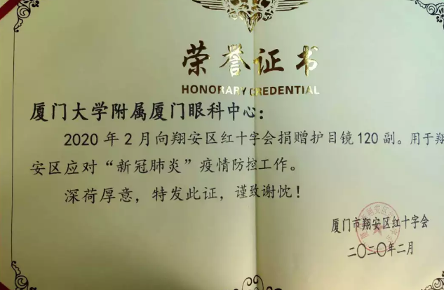 只見(jiàn),數(shù)位志愿者將一箱箱護(hù)目鏡送到街道代表手中,一旁的紅色橫幅寫(xiě)著“眾志成城,抗擊疫情,廈門(mén)眼科中心在行動(dòng)”的醒目大字。連日來(lái),這樣的愛(ài)心場(chǎng)景出現(xiàn)在廈門(mén)各街道,這是來(lái)自廈門(mén)大學(xué)附屬?gòu)B門(mén)眼科中心的愛(ài)心捐贈(zèng)。