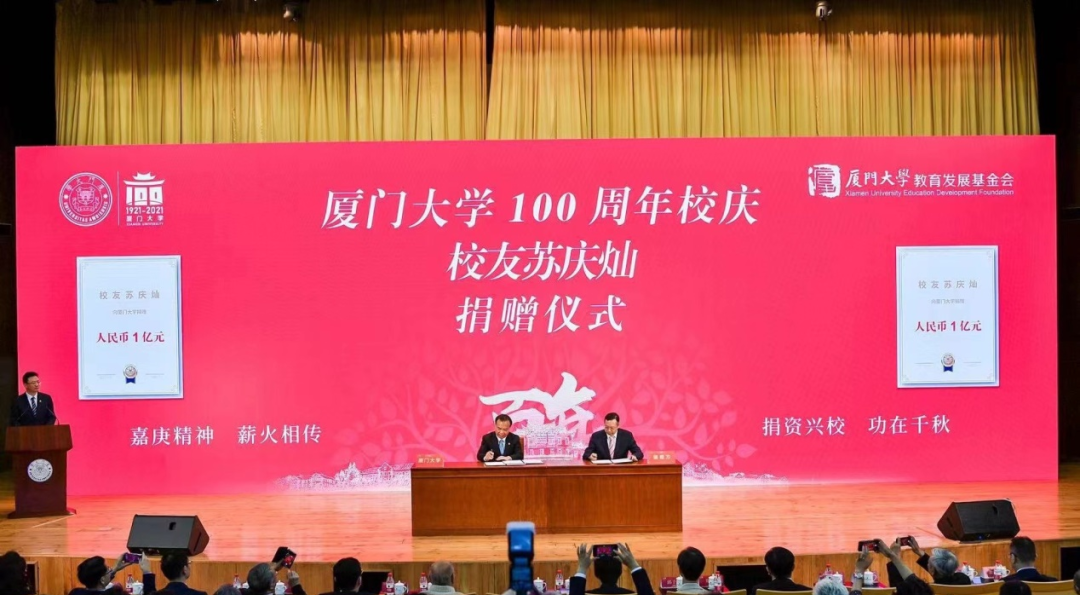 眼科醫(yī)院集團(tuán)蘇慶燦董事長(zhǎng)向廈門大學(xué)捐贈(zèng)1億元。