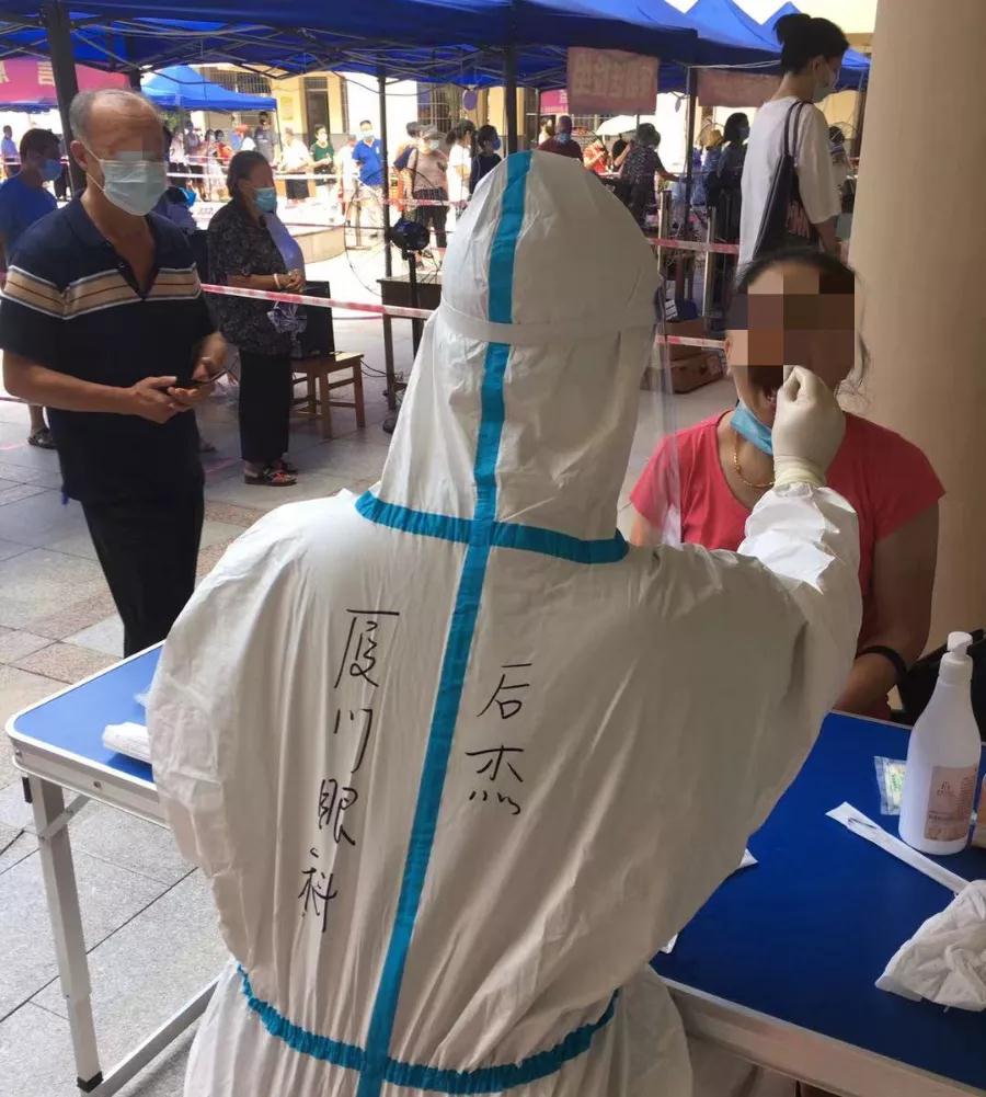 廈門市第三輪全員核酸檢測啟動。依照部署,廈門眼科中心醫(yī)護人員奔赴各社區(qū)核酸檢測點支援。截止發(fā)稿,廈門眼科中心已派出403名醫(yī)護人員前往25個社區(qū),助力廈門市打贏疫情防控這場硬仗。作為支援前線的一員,22歲的男護士——后杰,主動報名,“隨叫隨到”。