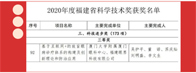 廈門眼科中心榮獲福建省科學(xué)技術(shù)獎