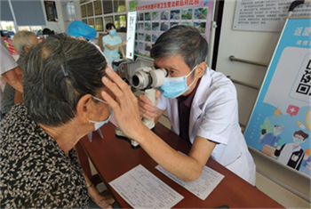 徐法松主任為居民進(jìn)行眼健康檢查