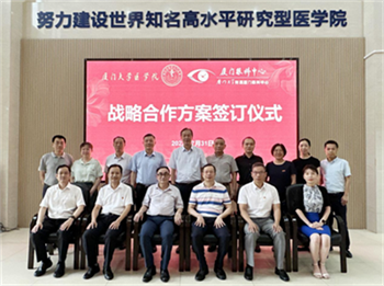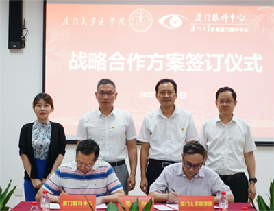 7月31日下午,廈門大學(xué)附屬廈門眼科中心與廈門大學(xué)醫(yī)學(xué)院在廈門大學(xué)翔安校區(qū)舉行戰(zhàn)略合作方案簽訂儀式,雙方簽署戰(zhàn)略合作協(xié)議并進(jìn)一步深化醫(yī)療、教學(xué)和科研領(lǐng)域的合作。廈門眼科中心董事長(zhǎng)蘇慶燦,中國(guó)科學(xué)院院士、廈門大學(xué)醫(yī)學(xué)院院長(zhǎng)韓家淮代表雙方進(jìn)行簽約。